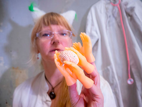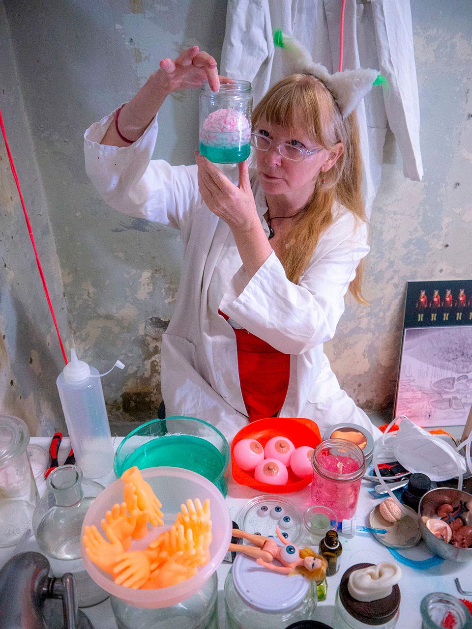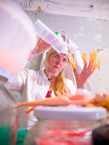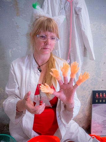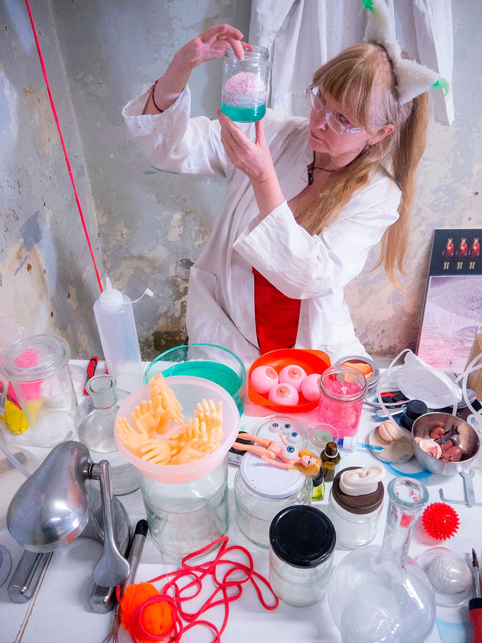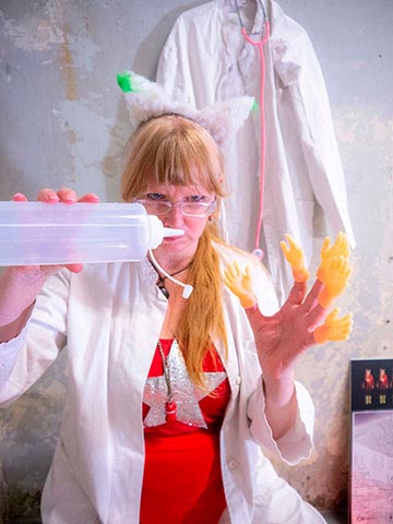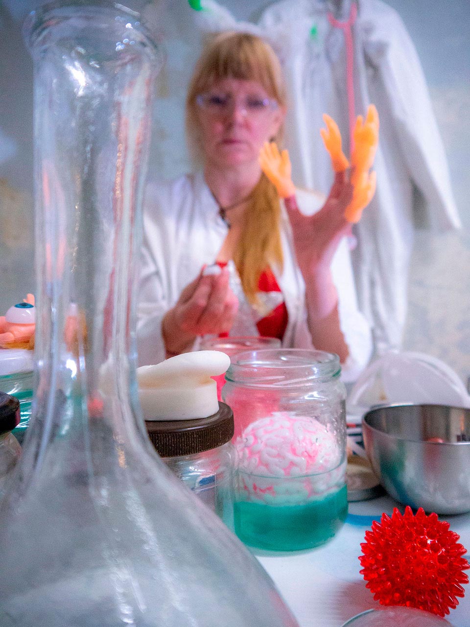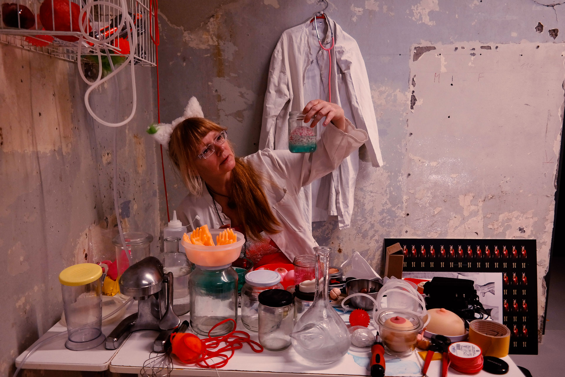 Frau Dr. Katz arbeitet in ihrem LABOR an der Erneuerung und genetischen Verbesserung des Körpers ihrer Patientin. Durch Tissue Engineering ist sie in der Lage, neue Organe in der Petrischale bzw im Marmeladenglas zu züchten.